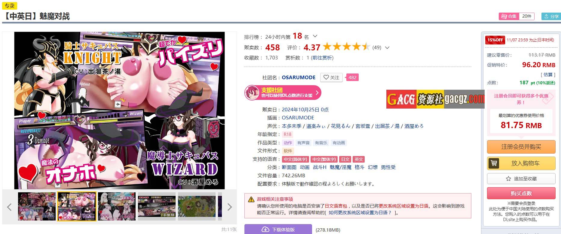 【日式ACT/动态/2D】魅魔战斗 / 魅魔对战 サキュバスバトル Ver1.2 DL官方中文版【更新/PC/3G】