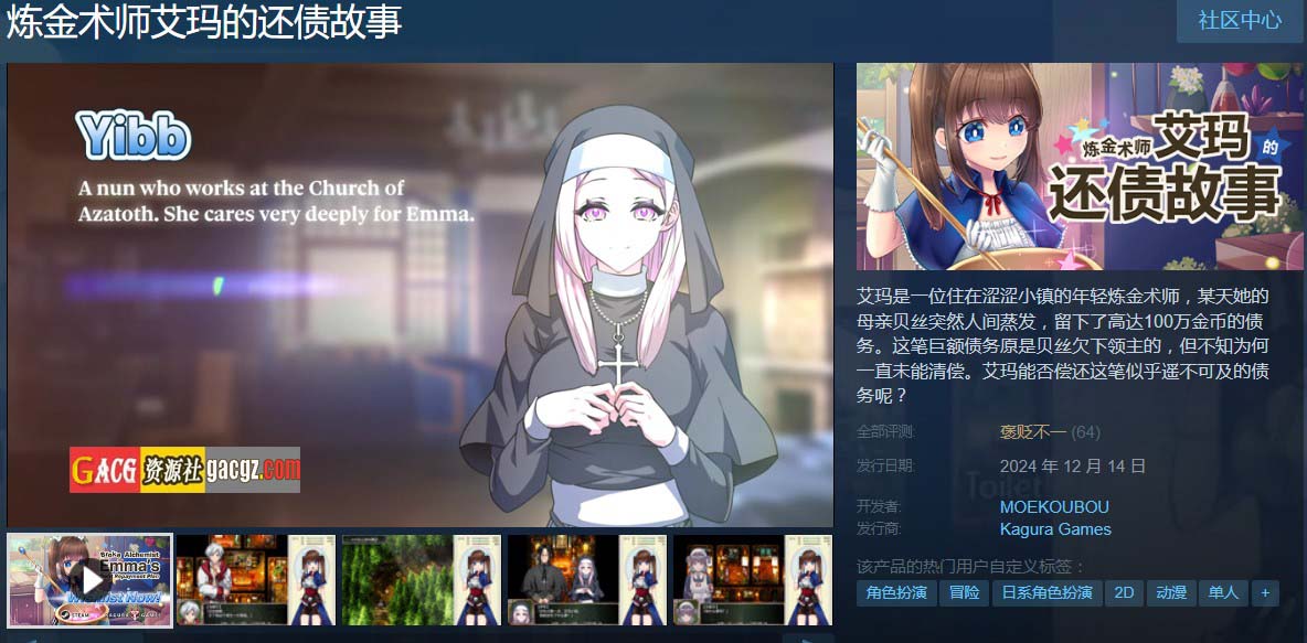 炼金术师艾玛的还债故事是一款以日系RPG风格为核心的游戏,玩家将扮演年轻的炼金术师艾玛,踏上一场充满奇幻色彩的冒险旅程。艾玛肩负着偿还巨额债务的使命,穿梭于不同的世界与场景,寻找失落的炼金术配方,并解决各种谜题与挑战。